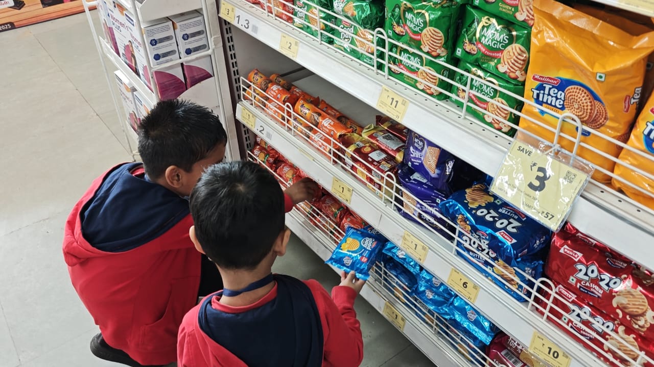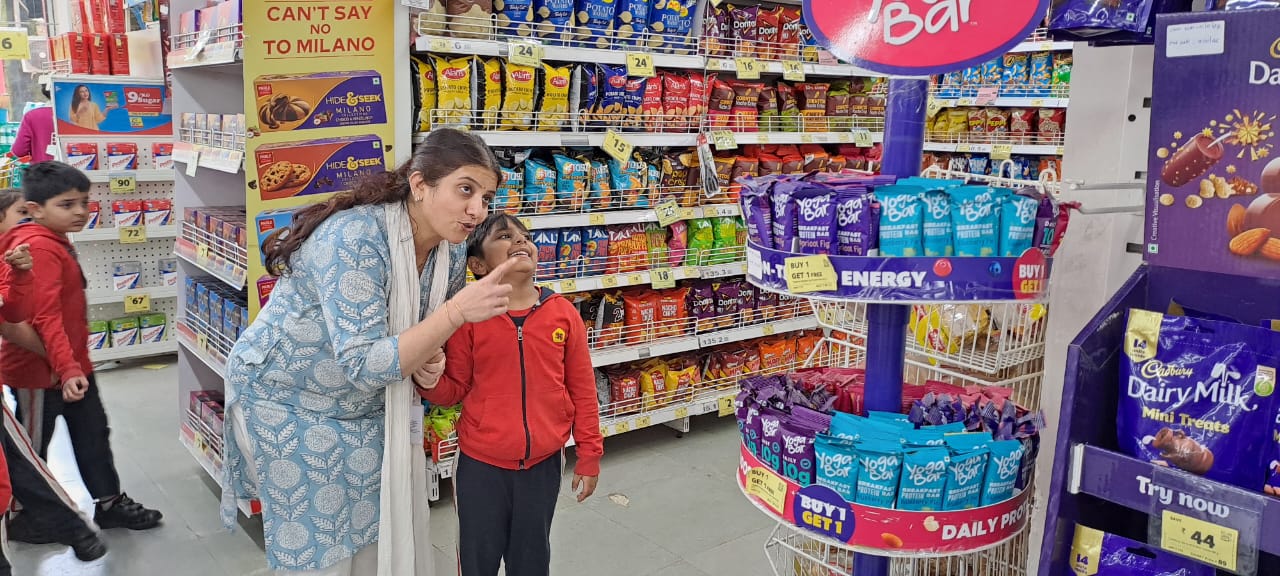The visit offered real-life exposure to fruits, vegetables, groceries, and basic shopping practices in a safe and engaging environment.